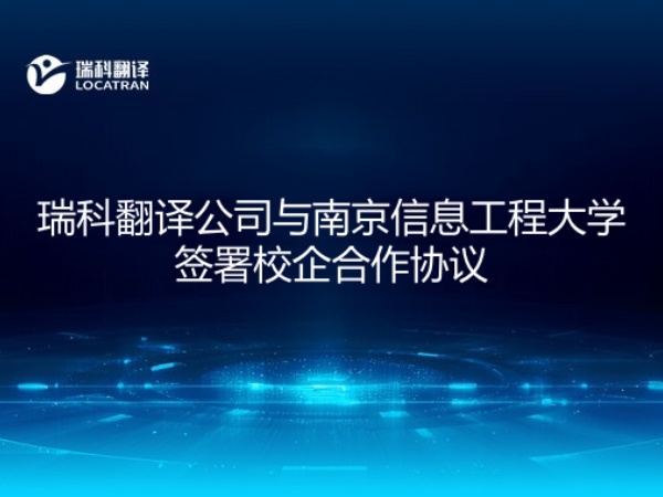 2020年6月3日,南京信息工程大学文学院外国语言文学培养方案修订专家论证会在文德楼召开,南京信息工程大学文学院院长与瑞科翻译公司刘克超签署了校企合作协议。