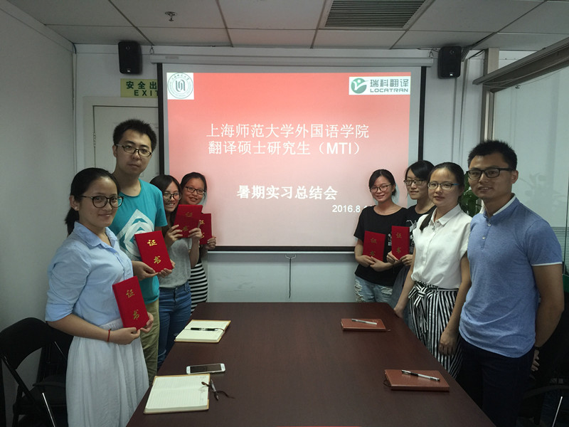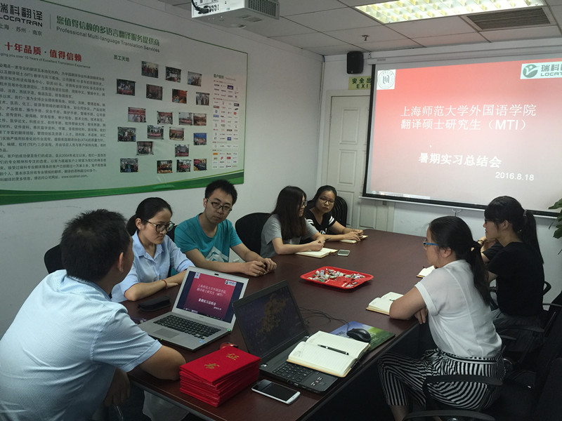 上海师范大学是瑞科翻译公司首个建立校企合作关系的高校,早在2012年7月20日,上海师范大学外国语学院与上海瑞科翻译公司共建了翻译硕士(MTI)教学与实习基地。瑞科翻译公司每年为上师大多名翻译硕士研究生提供翻译实习机会,共同培养具有一定翻译实践能力的翻译硕士。2016年7月11日,上海师范大学6名翻译硕士来到了瑞科开始了为期一个半月的实习之旅,于8月18日结束。