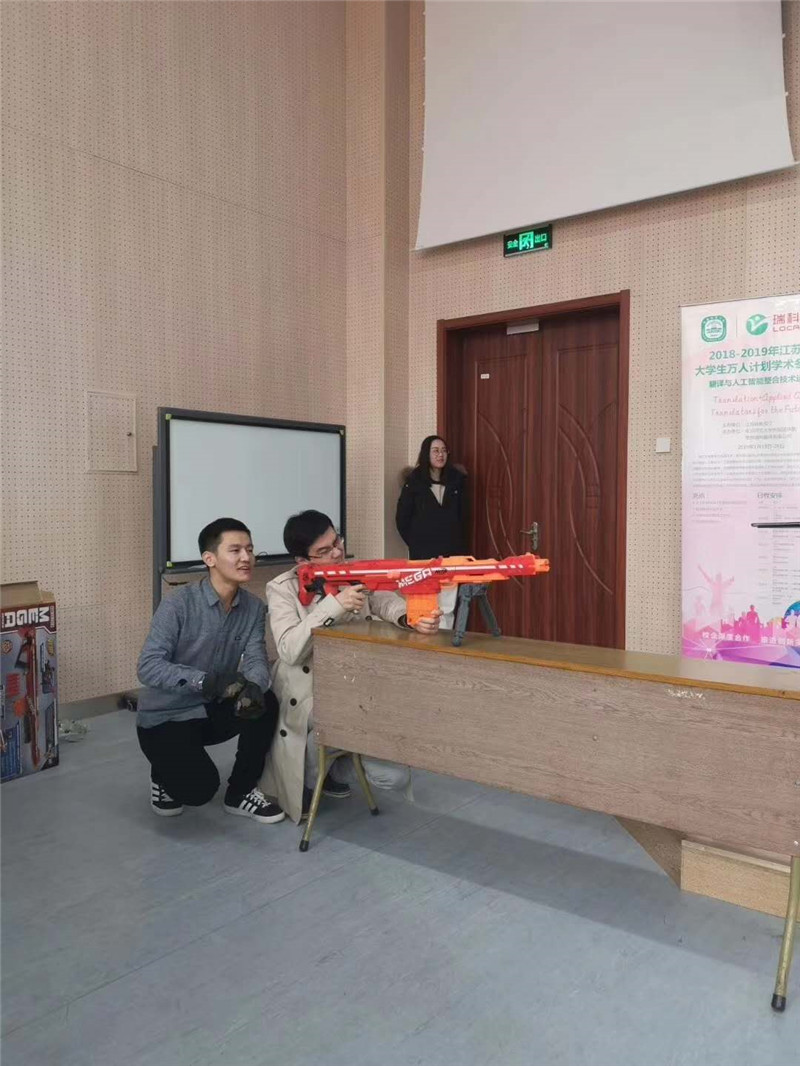 晚上,冬令营的老师们为同学们准备了趣味体育活动:NERF枪射击比赛。同学们提前设计了三轮比赛玩法,“体现了年轻一代的创新思维”。严志军院长、许多教授、蔡健老师也参与其中。在趣味竞赛的同时,拉近了彼此之间的距离,也体会到了大学时代不常有的集体感。